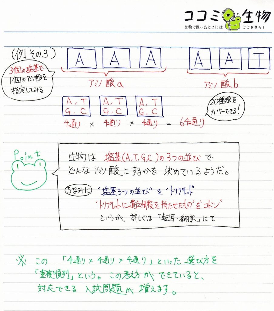 「AAA」だったら「アミノ酸A」、「AAT」だったら「アミノ酸B」というように。
