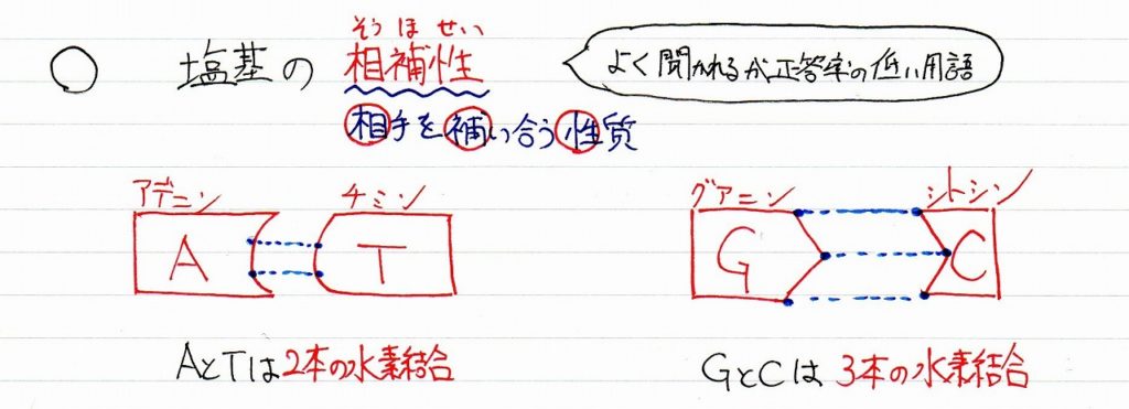 この「相補性」は塩基が備えている「結合の本数」が違うことから生じている。
