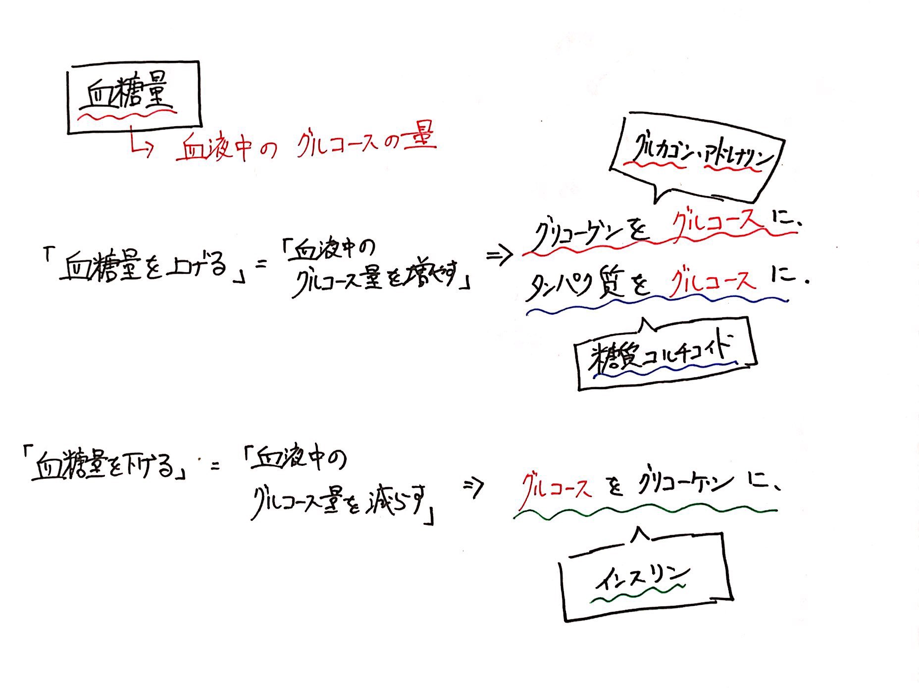 まずはレベル1として、「血糖量調節に関わるホルモンは何か」と問われたときに、