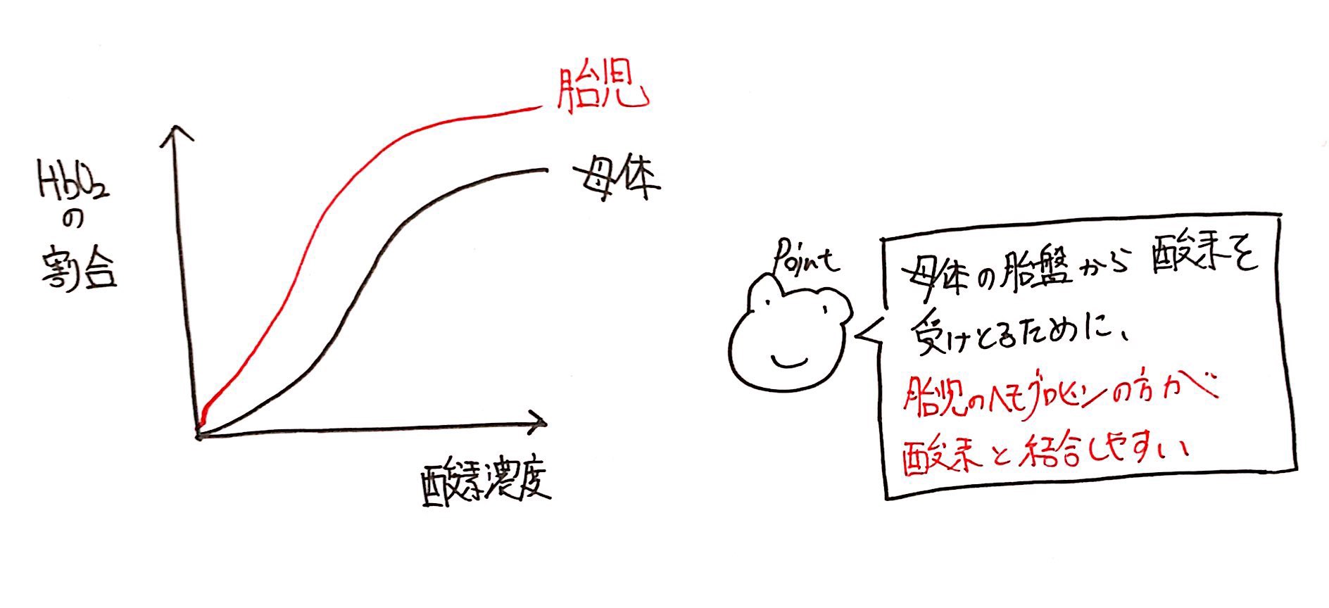 胎児は母体から酸素を受け取るために、母体よりも酸素との結合が強くなければなりません。