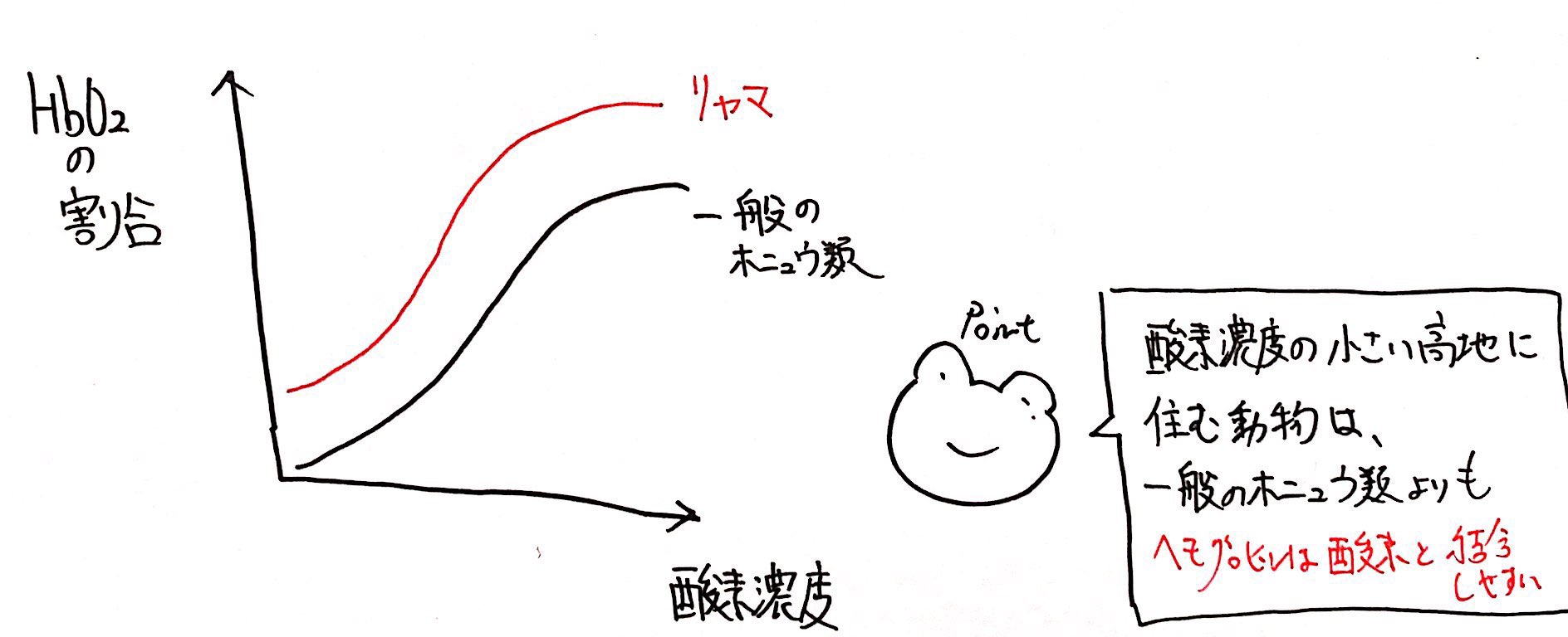 酸素の薄い高地に生息しているため、ヘモグロビンは酸素と結合しやすくなっています。