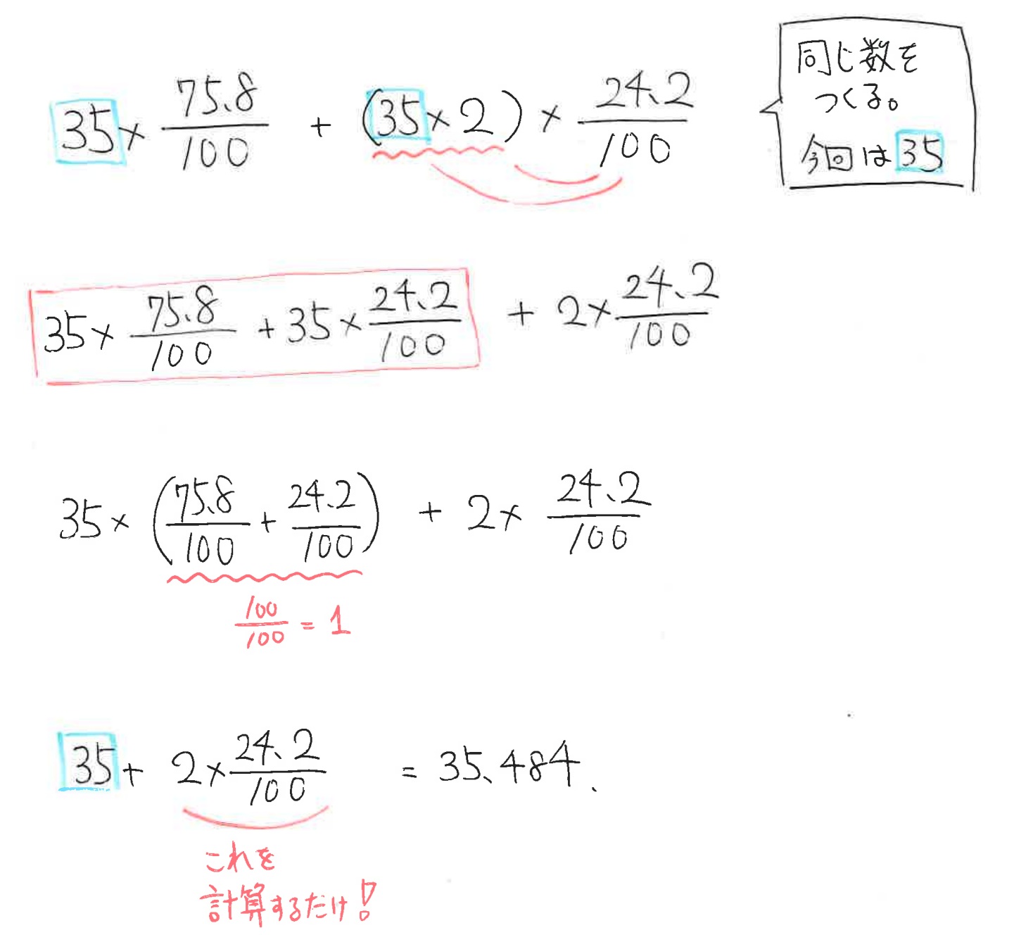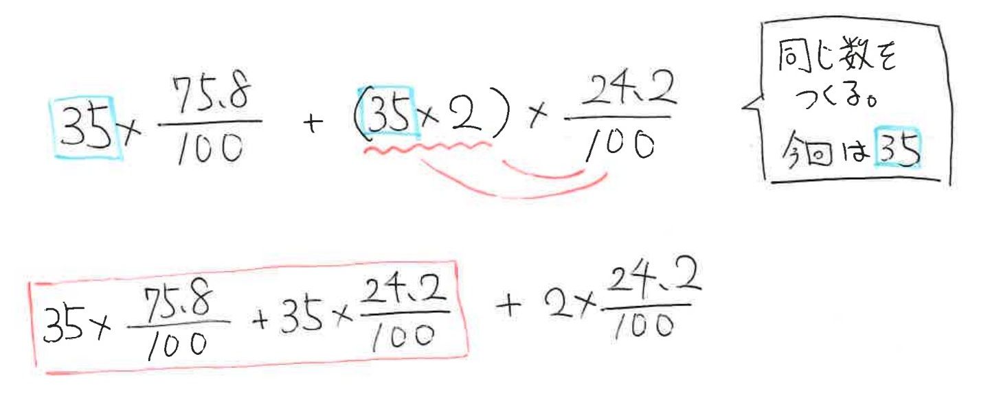 次に、(35+2)としているので、分配法則が働きますので、展開します。