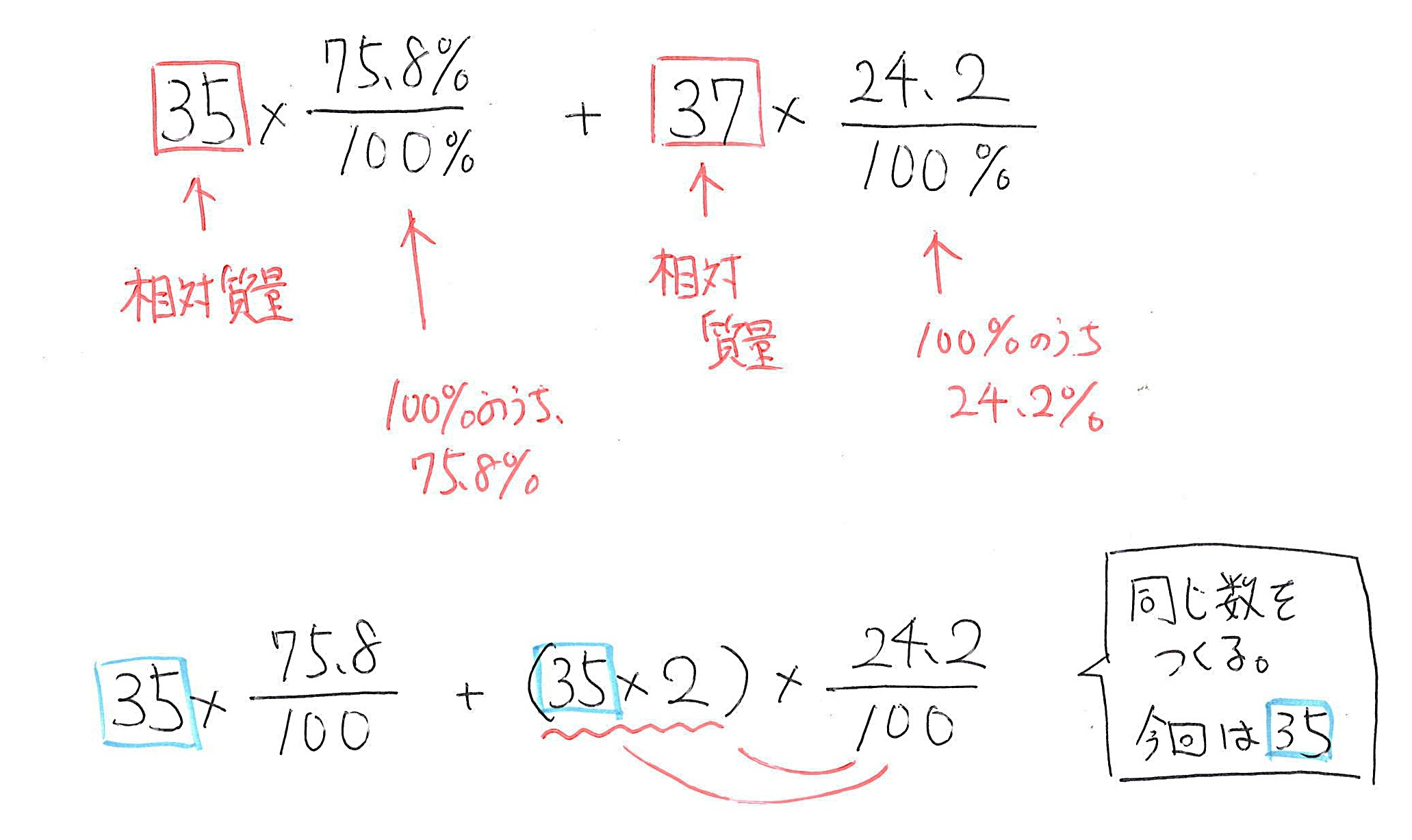 37を残す目的で「(37-2)と37」にしても同じように計算できます。
